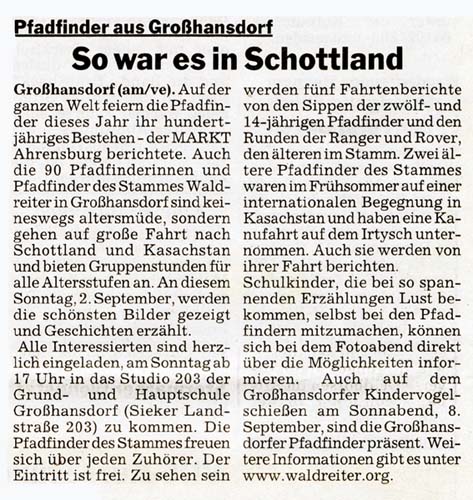 Aktuelles vom Stamm Waldreiter (Sommerfahrt)