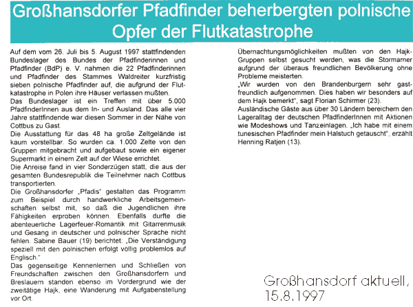 Großhansdorfer Pfadfinder beherbergten polnische Opfer der Flutkatastrophe