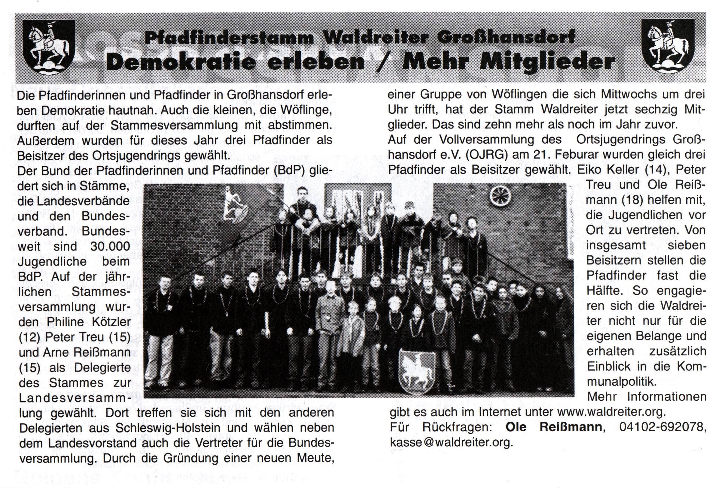 Großhansdorfer Pfadfinder nahmen Flutopfer auf