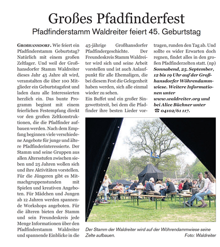 Großes Pfadfinderfest – Pfadfinderstamm Waldreiter feiert 45. Geburtstag