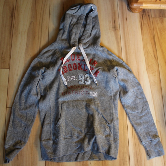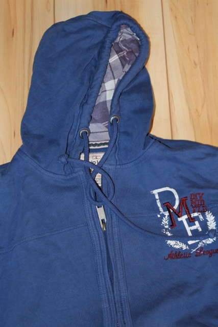 Eine Jacke für große Jungs. Die Kapuzenjacke ist Blau und hat zwei Taschen. Die innere Kapuze ist kariert. Die Jacke ist super intakt aber man sieht schon, dass sie ausgetragen ist. Wir verkaufen die Jacke für 10€.