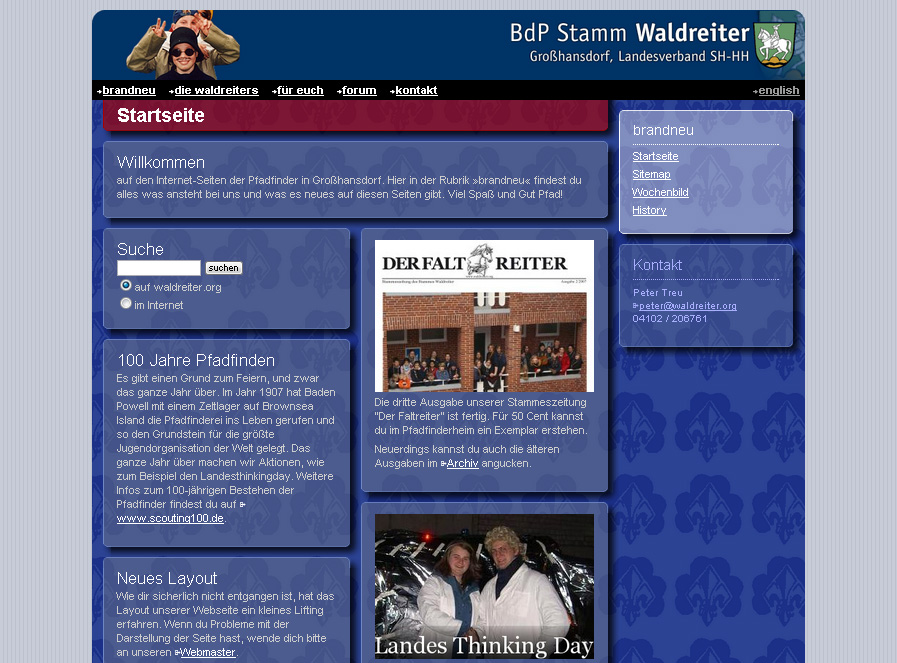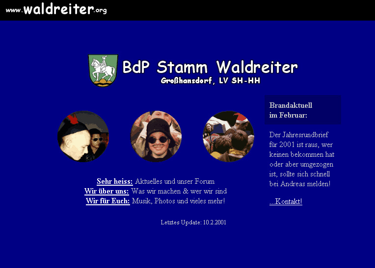 Die Internet-Präsenz des Stammes Waldreiter gibt es nun schon seit über 10 Jahren. Grund genug für uns, einen Blick zurück zu werfen. Die Wayback-Machine machts möglich. Alle archivierten Waldreiter-Seiten kann man sich hier im Online-Archiv angucken. Viel Spaß dabei!