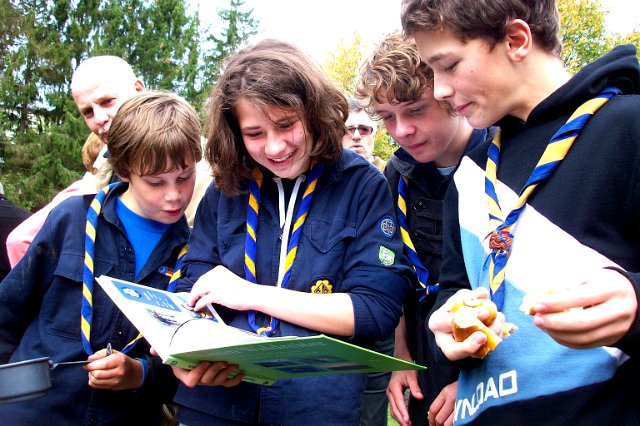 Die Jubiläumschronik begeistert alle: Fasziniert lesen die Stammesmitglieder in der 130 Seiten starken Geschichte des Stammes. Viele Bilder und Texte haben die PfadfinderInnen zu diesem Projekt beigetragen.