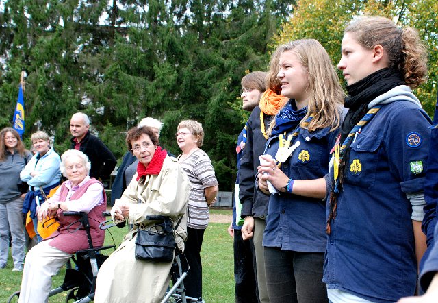 Der Stamm verdankt Helmut und seiner Mutter sehr viel. Deswegen freuten sich alle sehr, Frau Buss beim Jubiläumsfest begrüßen zu können. Frau Buss wurde in versammelter Runde für ihr Engagement für den Stamm herzlich gedankt.
